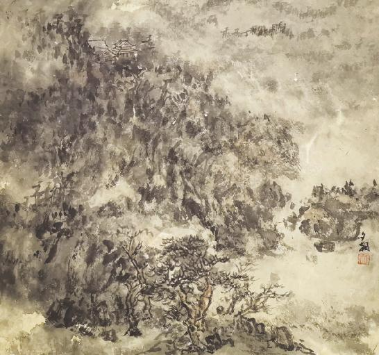 应朋友之邀,我赴日本,逛了大阪、游了富士山后,去京都的东山寺,拜访了日本的一位老学者伊藤先生。他今年已经八十八岁了,真的是鹤发童颜、仙风道骨,端庄而不失清雅、博学而更显亲和。他告诉我,十五年前,他经常到中国。他赞美中国的景致,感慨其雄伟博大,更喜欢收藏中国山水画作。他的画室里挂着的几乎都是中国的山水画。他近乎一个中国通,话语不多,却句句中的,令我钦敬。因为朋友之约来得仓促,竟使我造访前忘了备一点见面的礼物,有点局促。突然想起我包中还有一幅夕朝赠我的山水小景画片,我便取出,捧赠给他,道出我与这位画家——夕朝——的情分,并请他点评。他祥和地点头,致谢收下了,审看了一下后,赞许地点了一下头。在我告辞的时候,他又叫住了我,从画案上拿出一幅画赠送给我。那是清末“沪上三熊”之一的著名画家张熊的山水小画,尺幅不大,却极写泰山之麓的林间曲径。野云寒鸦,树老枝瘦,秋意使然……令人感慨万千。我不忍回绝这位长者的真挚,只得恭敬地收下,向他鞠躬告辞。路上,友人告诉我伊藤先生的为人,我没有听进去,只是陷入深深的沉思。艺术是无国界的,就像天上的游云,属于同一个天空;绘画是有语言的,它的笔触所绘就的景致,融进了情感,给人很多的遐想和启迪。日本画及日本文化深受中国文化的启迪和影响,很多日本友人对中国文化情有独钟,伊藤先生就是其中的一位。他送我这幅小画的目的是什么呢?难道是告诉我历史的天空飘浮的云,就像河间的流水,看上去一样,却时时在翻新,或是在说夕朝的这幅山水画,勾起了他的某些回忆,与张熊的作品有着同样的天趣?总之是一种认可、一种赏识。
