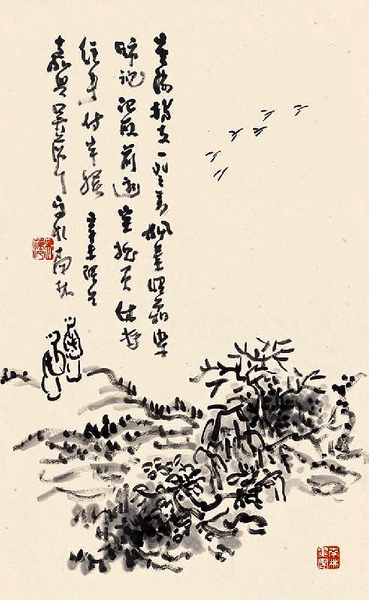 值得注意的是,文人画是否就不需要笔墨技巧和技术含量呢?答案当然是否定的。真正的文人画,首先必须是“画” —— 必定是在笔墨技巧方面达到相应水准,有的甚至并不输于专业画家的艺术造诣,只有在此基础上的艺术作品,才有可能称得上是“文人画”。经常见到有人随意挥洒几笔,有人问之,则曰:此乃文人画。实际上是对文人画莫大的误读,完全背离了文人画的宗旨。古往今来,真正的文人画,无一不具有独到的笔墨功夫。从苏轼、徐渭、八大山人、石涛等人的画中便可看出此点。