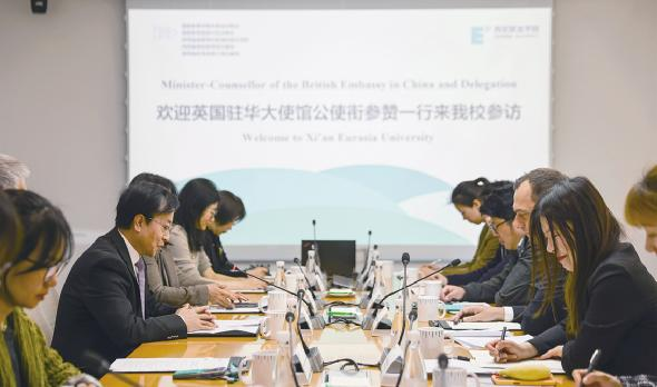 交流座谈会现场 学校供图 文化艺术报讯(全媒体记者 华春荣)3月20日上午,英国驻华大使馆公使衔参赞墨泰·穆迪一行到访西安欧亚学院,双方围绕国际化人才培养、校企协同机制及教育质量保障等议题进行了深入交流。