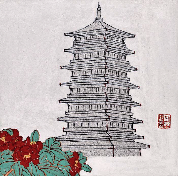 刘畅 《长安塔》 纸本设色20cm×20cm 2022年