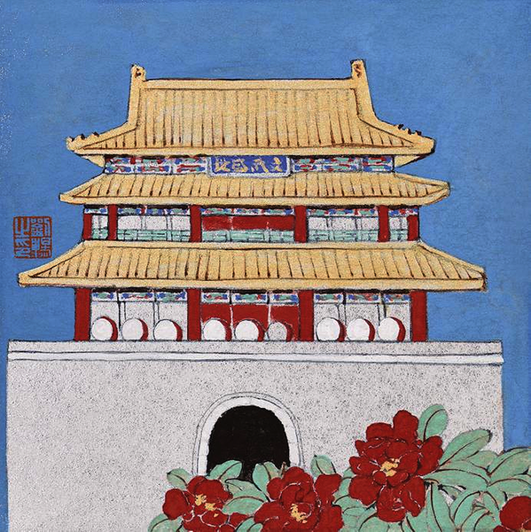 刘畅 《西安鼓楼》 纸本设色 20cm×20cm 2022年