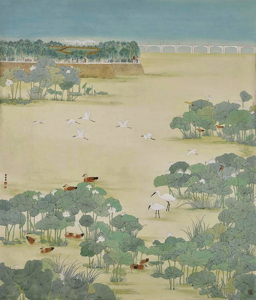 刘畅 《高陵“泾渭湿地”观鸟基地》 纸本设色180cm×160cm 2025年