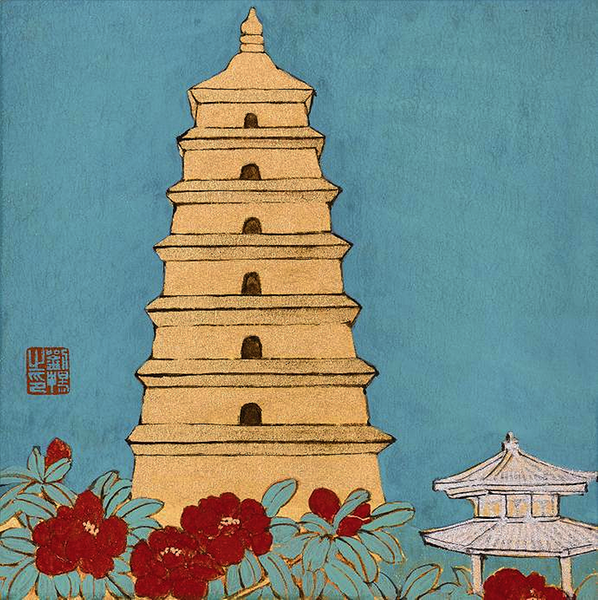 刘畅 《大雁塔》 纸本设色20cm×20cm 2022年