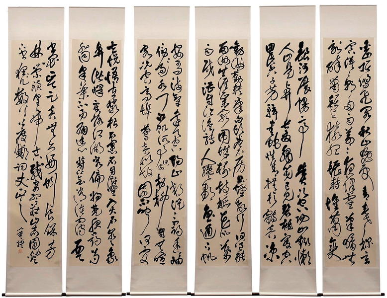 以■ 《临王铎赠郑公度草书诗卷》 纸本墨书 240cm×60cm×6 2024年