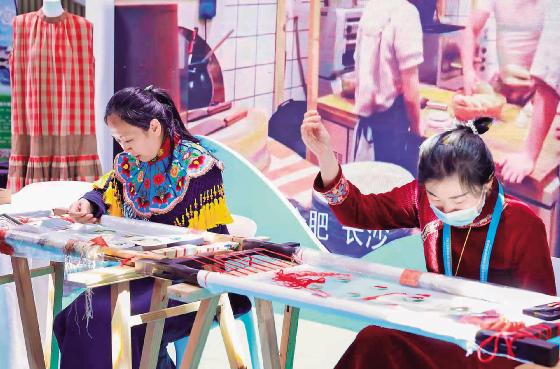 王春莉(左)展示非遗技艺 刘青/摄 4月17日至19日,以“丝路链接世界·共创文旅未来”为主题的 2026 西安丝绸之路国际旅游博览会在西安国际会展中心举行,796家企业亮相。而文创非遗与硬核科技,无疑是本届旅博会上最亮眼的“双主角”。