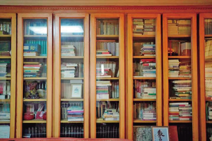 客厅中依墙而建的书柜一角 穿过太白花园小区里略显斑驳的旧楼群,拾级而上至一栋居民楼的5楼,我们叩开了著名作家、鲁迅文学奖得主、西安市作协主席穆涛先生的家门。