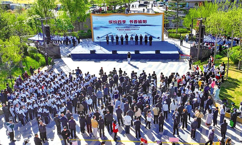榆阳区2026年全民阅读活动周启动仪式现场 图源:榆阳区委宣传部 文化艺术报讯(全媒体记者 刘燕郡)为深入弘扬中华优秀传统文化,在全社会营造爱读书、读好书、善读书的浓厚氛围,4 月 18日,榆林市榆阳区2026年全民阅读活动周启动仪式暨“盛世中华典籍榆阳”经典诵读活动在凌霄公园举行。活动以经典诵读为纽带,旨在传承文化根脉、共筑书香榆阳,全区400余名党员干部、中小学生及社会读书组织代表齐聚现场,共享这场文化盛宴。