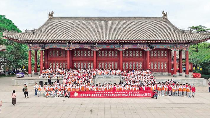 学校师生齐诵《少年中国说》 赵雨明/摄 文化艺术报讯 (全媒体记者 华春荣 赵雨明)4月20日,由陕西新华出版传媒集团、陕西人民出版社、文化艺术报社联合主办的“三秦少年·行”系列活动之“寻迹华清宫、厚植爱国情”陕西师范大学陆港小学 2026 春季第二场思政课社会实践活动在西安临潼华清宫举行。学校师生走进文化圣地,在沉浸式研学中触摸历史脉络,厚植家国情怀。