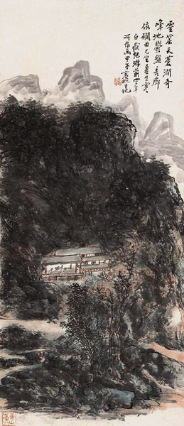 黄宾虹 《湖山初霁图》 纸本设色 71.5cm×34cm 1952年 浙江省博物馆藏