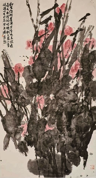 张勇涛 《红衣淡雅墨淋漓》 纸本设色 180cm×97cm 2025年