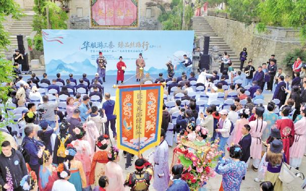 启动仪式现场 刘佳/摄 文化艺术报讯(通讯员 刘佳)4月 28日,“华服游三秦·臻品丝路行”2026穿着汉服游陕西暨“五一”文旅消费周启动仪式在西安关中民俗艺术博物院举办。本次活动由陕西省工业和信息化厅、陕西省文化和旅游厅联合主办。